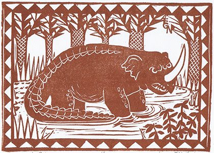 Emela Ntouka is a legendary horned creature from Mbuti and Twa folklore, believed to inhabit the swamps and rivers of the Congo Basin.