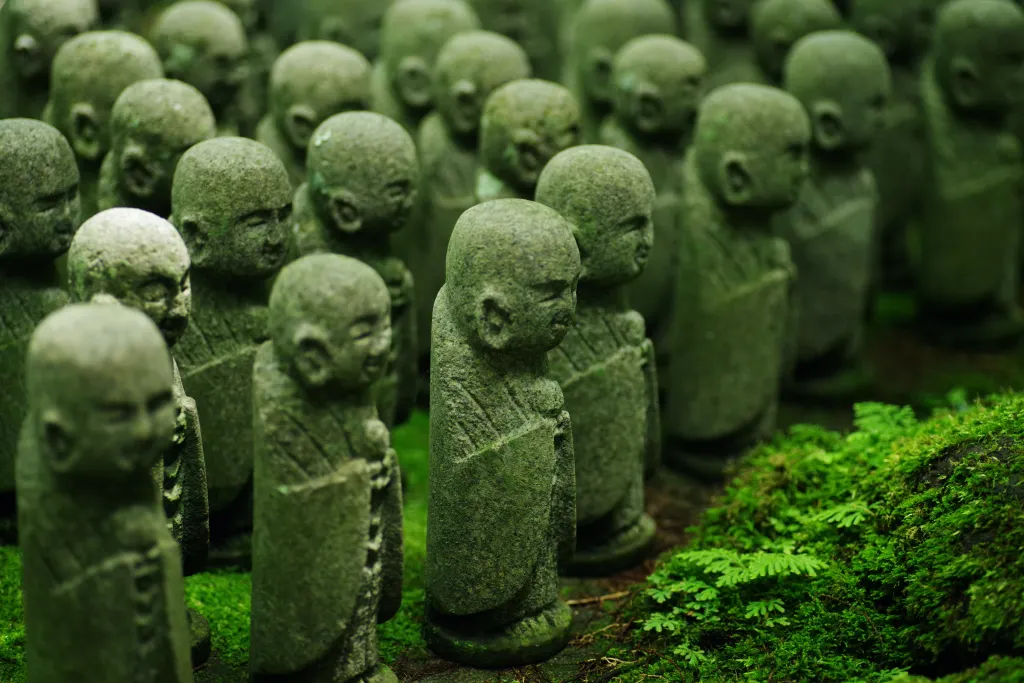 Jizō is revered as the guardian of those who exist in vulnerable states: children, travelers, pregnant women, and souls navigating the uncertain passage between death and rebirth. Over centuries, his role expanded beyond doctrine into folklore, ritual, and daily life. The countless stone statues dressed in red bibs and woolen caps are not mere symbols but acts of devotion—physical expressions of grief, hope, apology, and prayer. Jizō’s popularity endures because he does not judge or command; instead, he waits, listens, and guides, embodying compassion that feels profoundly human.