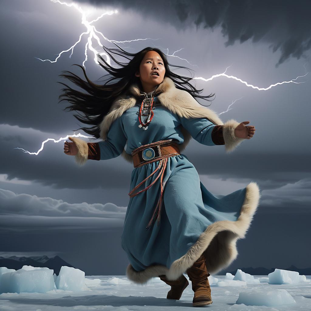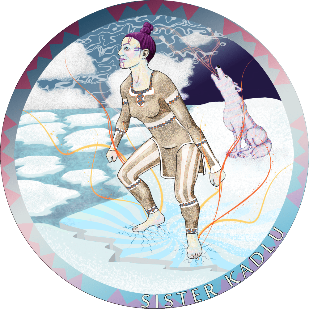 Kadlu is not a solitary figure but an integral part of a powerful trio of sisters who govern the weather. Kweetoo, the middle sister, masters lightning, using stones to create illuminating streaks across the sky. Meanwhile, Inirtoq, the youngest, controls rain, conjuring it through a combination of stone striking and a touch of the fantastical with her unusual ability. Together, these sisters orchestrate the forces that sustain life in the harsh Arctic environment, ensuring balance and providing essential moisture to the parched tundra.