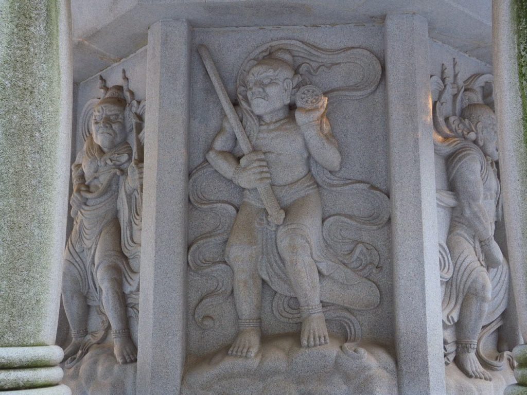 He appears either as a giant cosmic being in shamanic myths or as a serene bodhisattva with a meditative pose in Buddhist iconography.