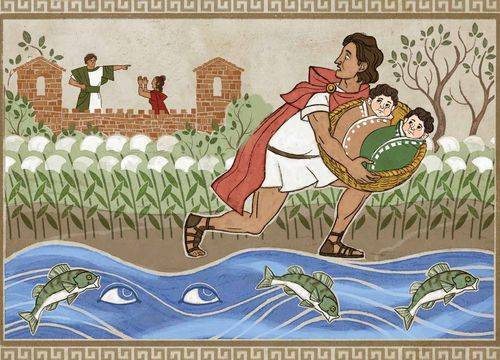 Amulius ordered the execution of the twin brothers by throwing them into the Tiber River. He believed that since they would die without being killed by the sword, they would be spared from punishment by the gods. He ordered a servant to carry out the death sentence, but in every scenario of this myth, the servant takes pity on the twins and spares their lives. The servant, then, places the twins into a basket onto the River Tiber, and the river carries the boys to safety.