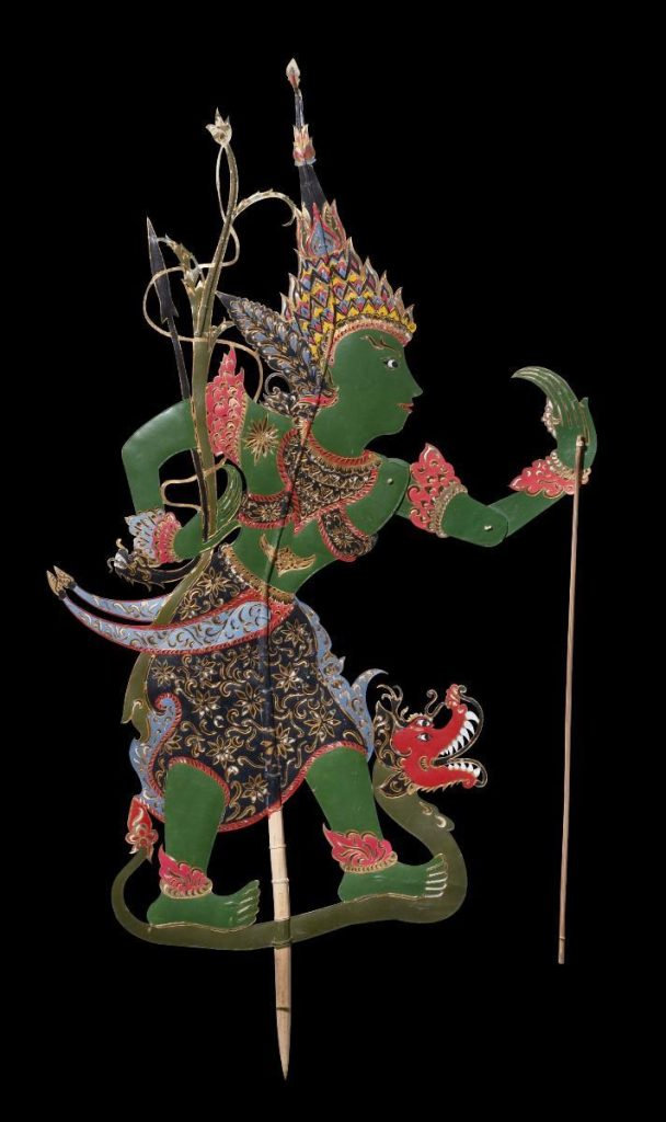 In Malay representations, Seri Rama is visually different from his Indian counterpart. Instead of the blue-skinned divinity seen in many Indian traditions, he is portrayed with a golden or light complexion, reflecting local artistic sensibilities. His appearance is refined and harmonious, with a poised expression, elongated features, and a regal profile that emphasises calmness and inner discipline. Wayang kulit puppets often depict him with delicate carvings, narrow eyes, and a posture that conveys nobility rather than aggression. These artistic details communicate the Malay ideal of the raja putera: a prince who inspires loyalty not through brute strength but through composure, dignity, and moral excellence.